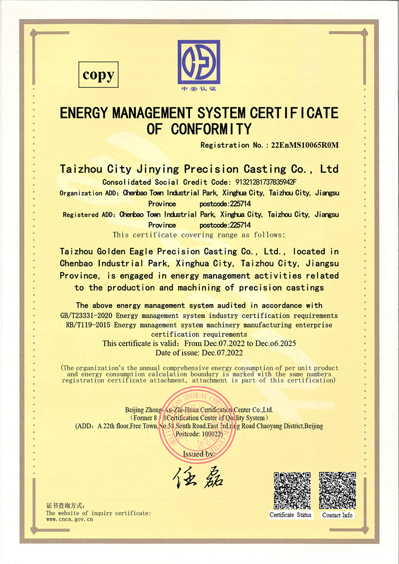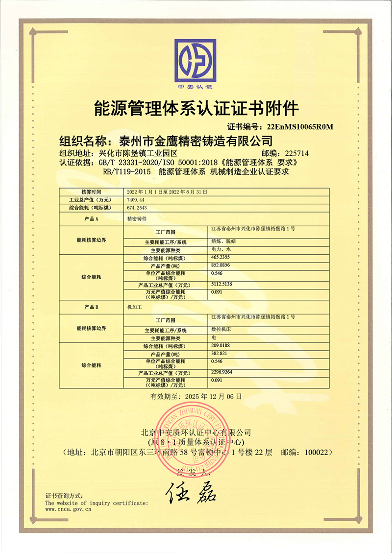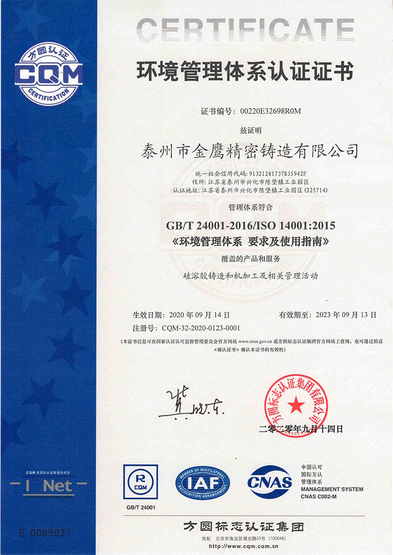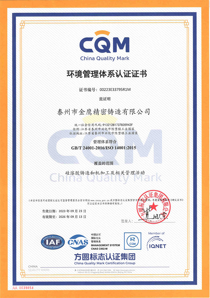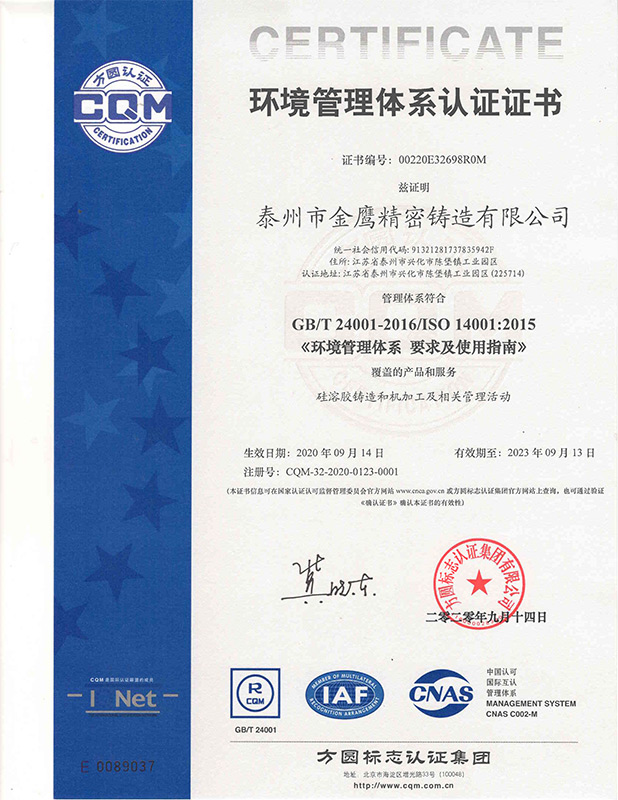 泰州金鹰-环境管理体系证书