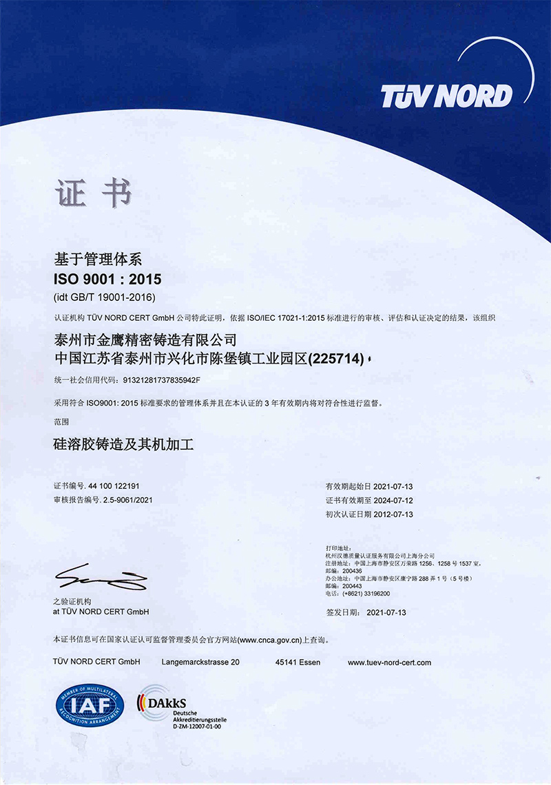 2021金鹰ISO9001-2015中文版证书